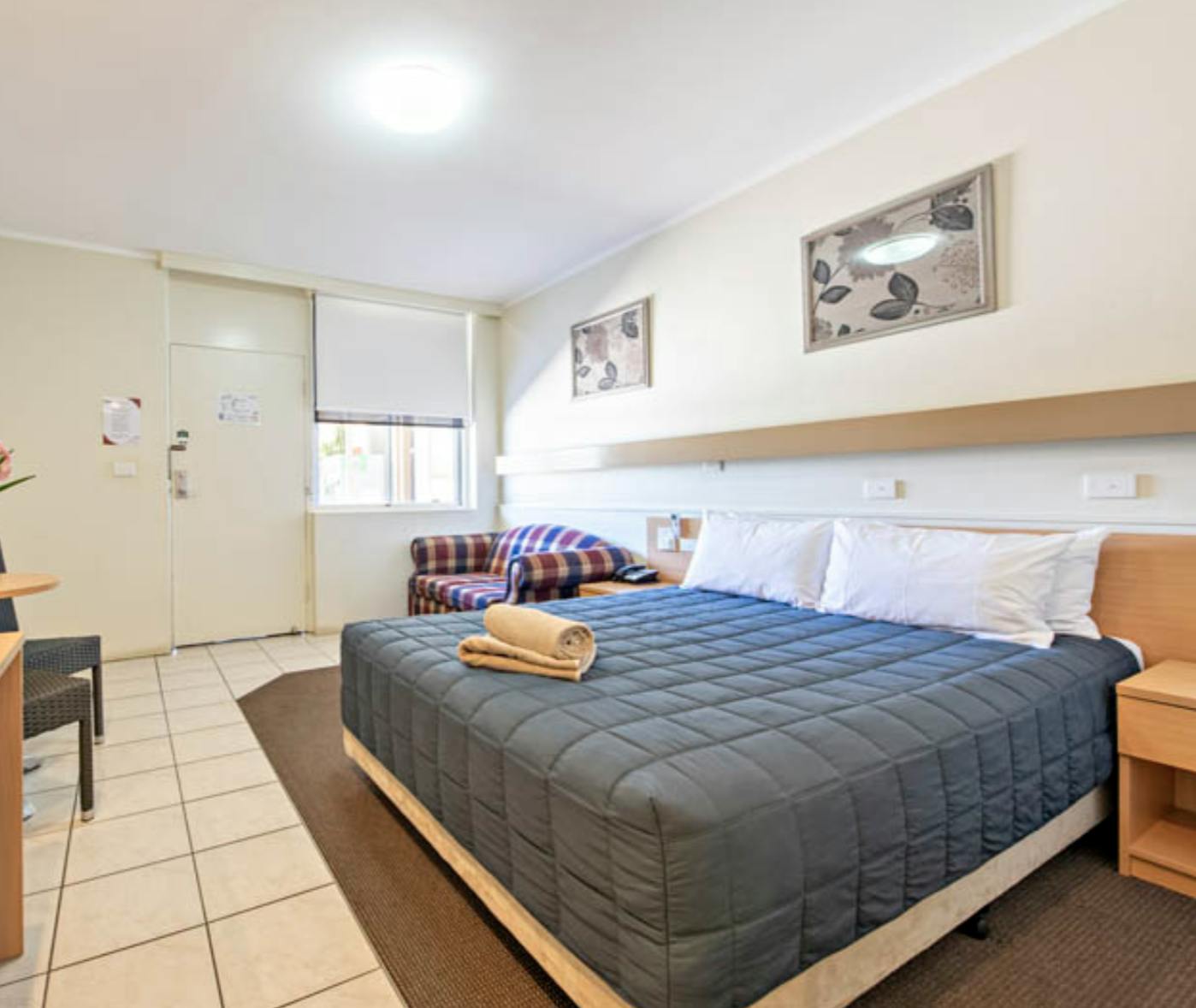 Our Corporate Queen rooms are our most popular room. Great value, great location. Ground level rooms with parking out the front, a queen bed with bathroom, desk, table and chairs and are perfect for the business traveller or couple. The Corporate Queen rooms are very popular with our guests and have views that overlook the pool area.