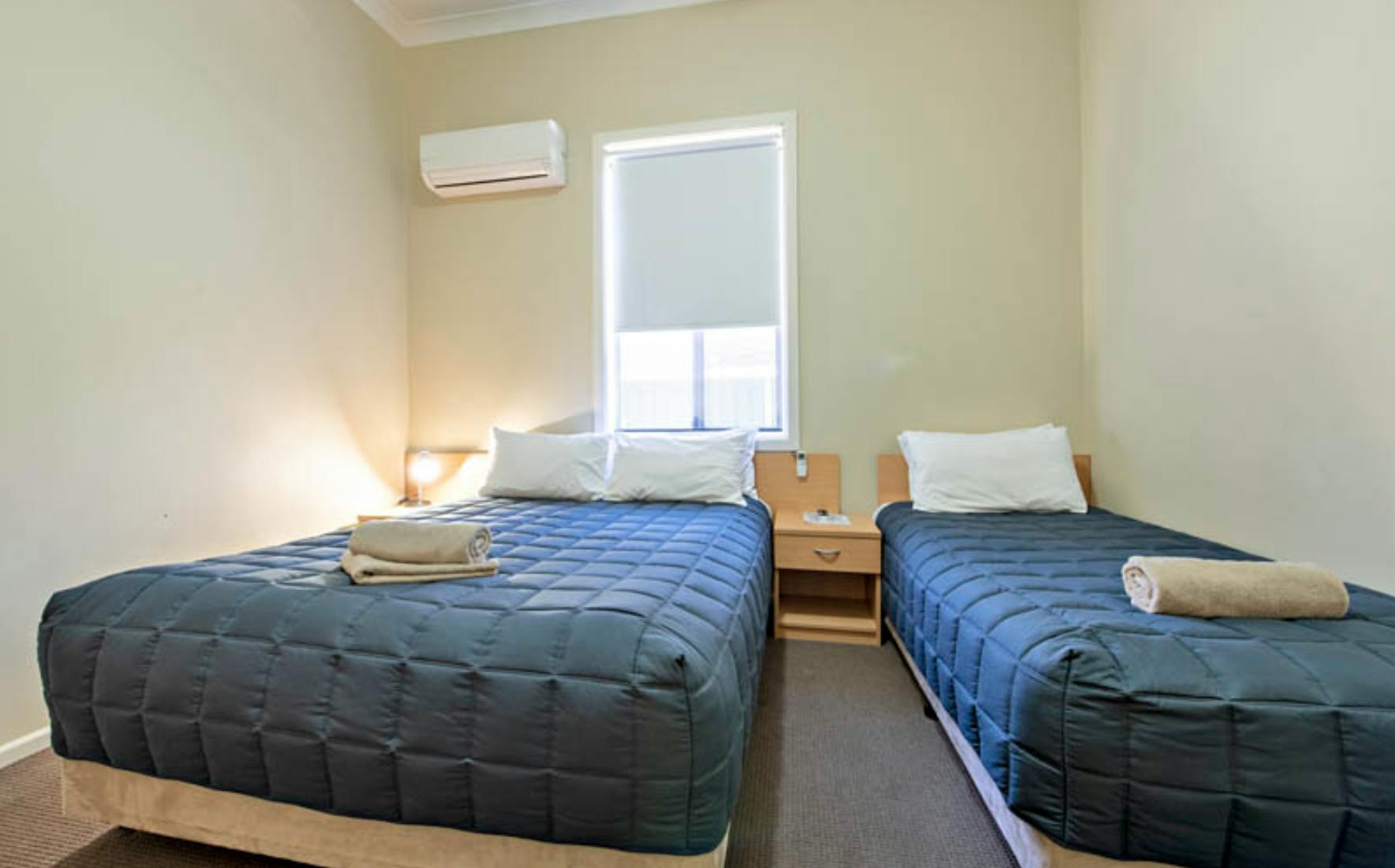 The Executive 3 bedroom Cottage is a very popular self-contained cottage offers three bedrooms, lounge room, laundry facilities, kitchen and verandah. It boasts two bathrooms to keep all guests happy! Room one has a queen bed with ensuite, room two and three has a queen and a single bed in each. Again, an ideal solution for work groups, families, couples travelling together or groups.